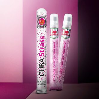 CUBA STRASS HEARTBREAKER FOR WOMEN dazzles in its signature cigar-shaped bottle filled with shimmering juice that leaves a trail of subtle paillettes on the skin. It opens with crisp and sweet fruity citrus notes, unfolds into a heart of vibrant green florals and white flowers, and settles into a warm, musky, vanilla embrace with a soft spicy finish.