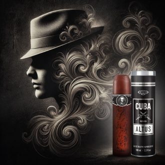 CUBA ALTUS FOR MEN is presented in the signature 100ml cigar-shaped bottle and opens with a delightful blend of citrus and sweet notes. The heart reveals a green, floral character, enriched by woody undertones. A warm base of vanilla, musk, and wood leaves a smooth and lasting impression.