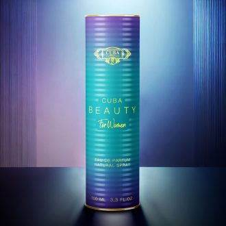 CUBA BEAUTY FOR WOMEN is presented in its iconic 100ml cigar-shaped bottle with a captivating turquoise-to-violet gradient. It opens with a refreshing burst of fruity citrus, blooms into a heart of white flowers and balsamic richness, and lingers with a warm, musky gourmand base that feels both comforting and alluring.