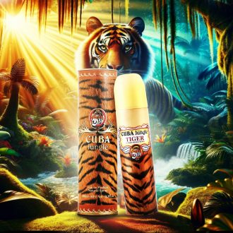 CUBA TIGER FOR WOMEN is presented in its signature 100ml cigar-shaped bottle, draped in a wild tiger-print design that evokes confidence and energy. The fragrance opens with a zesty blend of citrus and aromatic florals, instantly awakening the senses. At its heart lies a burst of fresh spicy and floral notes, creating a dynamic and sensual profile. The base lingers with white flowers, woody accords, and a musky finish that adds warmth and depth.