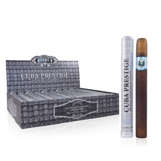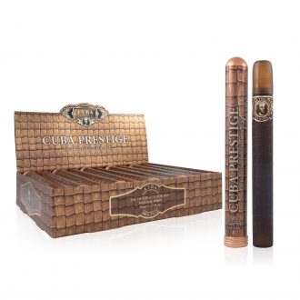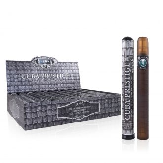 CUBA PRESTIGE PLATINUM FOR MEN is showcased in the brand’s signature cigar-shaped bottle, echoing masculine sophistication. It begins with a dynamic burst of citrus, fresh spicy tones, and fruity brightness. The heart reveals a warm, floral accord that adds both depth and elegance. A refined base of woody, creamy, earthy, and musky notes grounds the fragrance with smooth sensuality.
