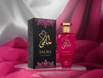 SALMA FOR WOMEN by NASMA is presented in a striking magenta bottle with golden accents and heart-shaped Arabic calligraphy, a true symbol of elegance and passion. It opens with bright citrus and rich amber, creating a luminous and warm first impression. At the heart, romantic notes of rose and jasmine blend with a touch of sweetness, evoking grace and sensuality. The fragrance finishes with a gourmand base of vanilla, smooth chocolate, and earthy patchouli, leaving a seductive and comforting trail.