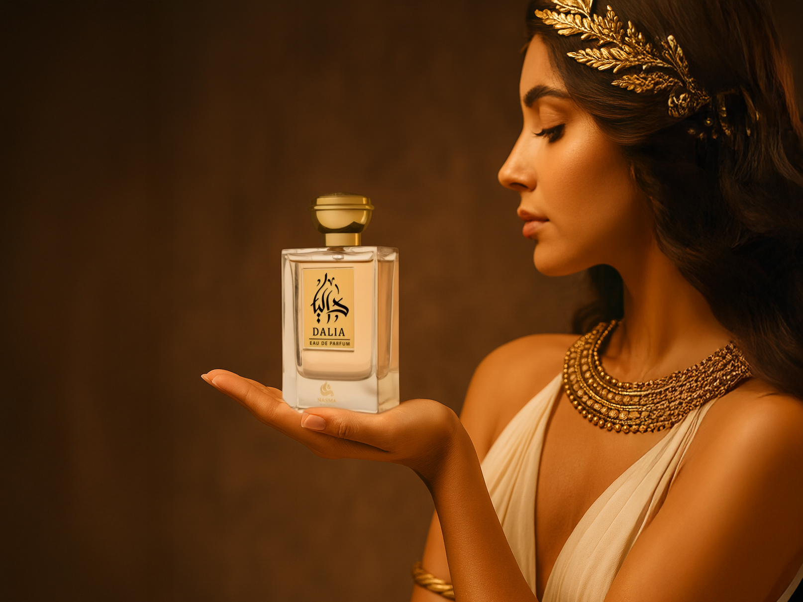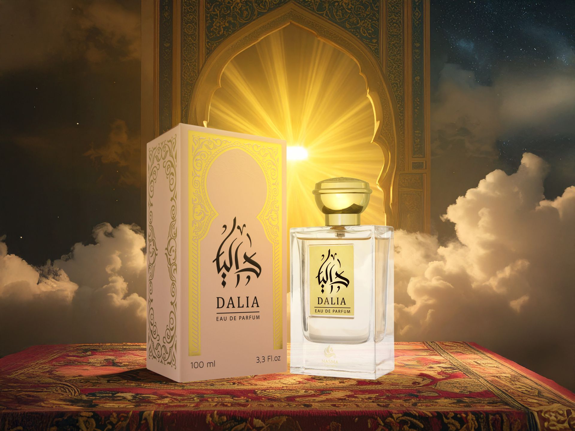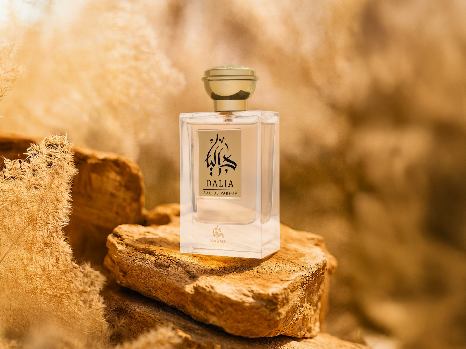DALIA FOR WOMEN by NASMA is beautifully presented in a clear, refined bottle with golden accents, reflecting the purity and sophistication of the scent inside. It opens with a burst of citrus, fruity, and fresh notes that immediately captivate the senses. The heart reveals soft and calming lavender, lending a soothing elegance. The base settles into a warm and sensual blend of woody, vanilla, and spicy tones, leaving a lasting impression of delicate confidence.