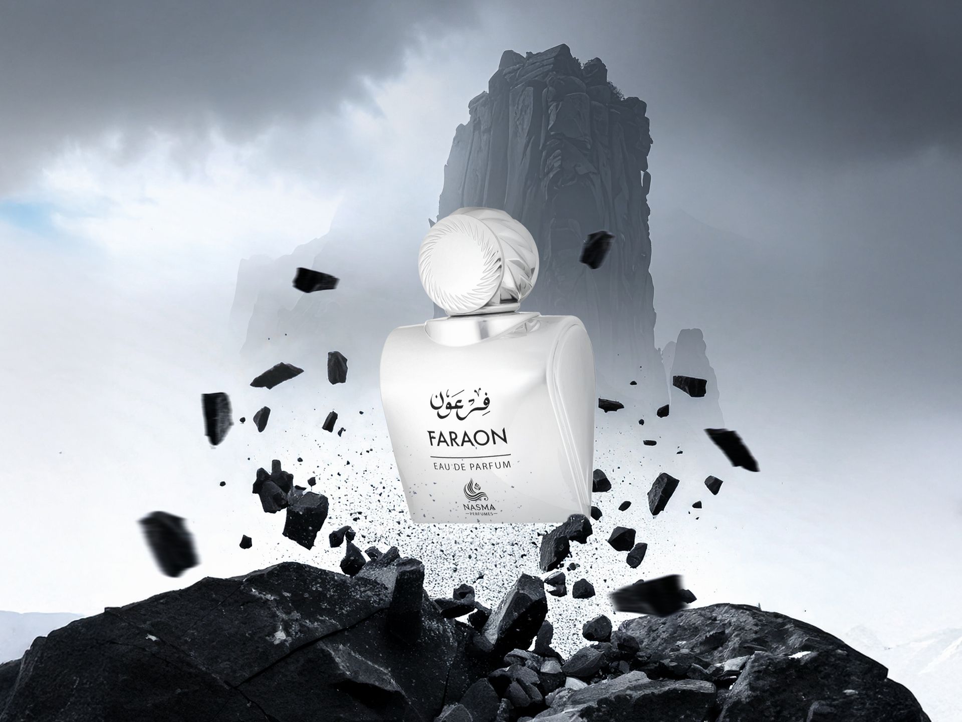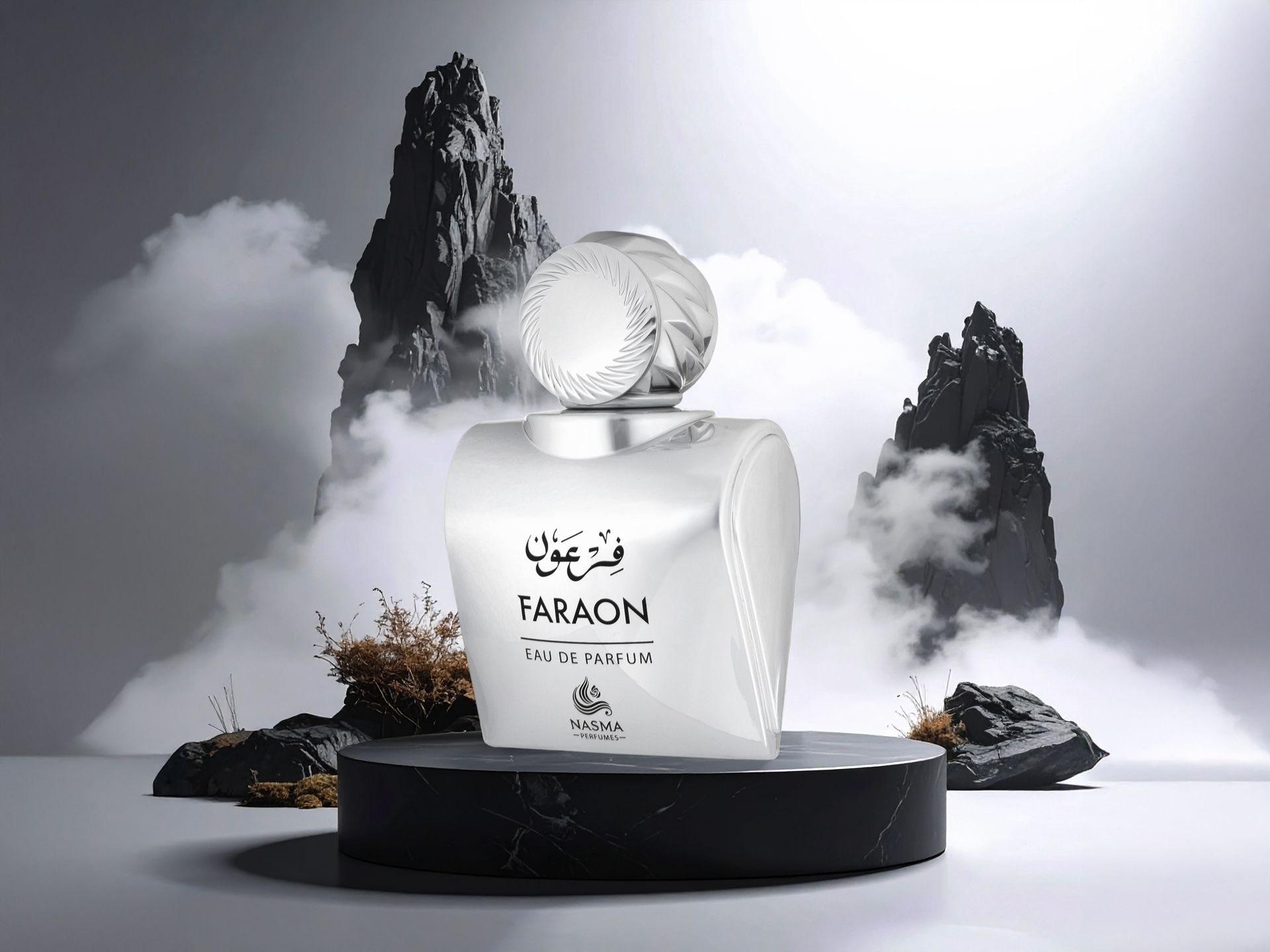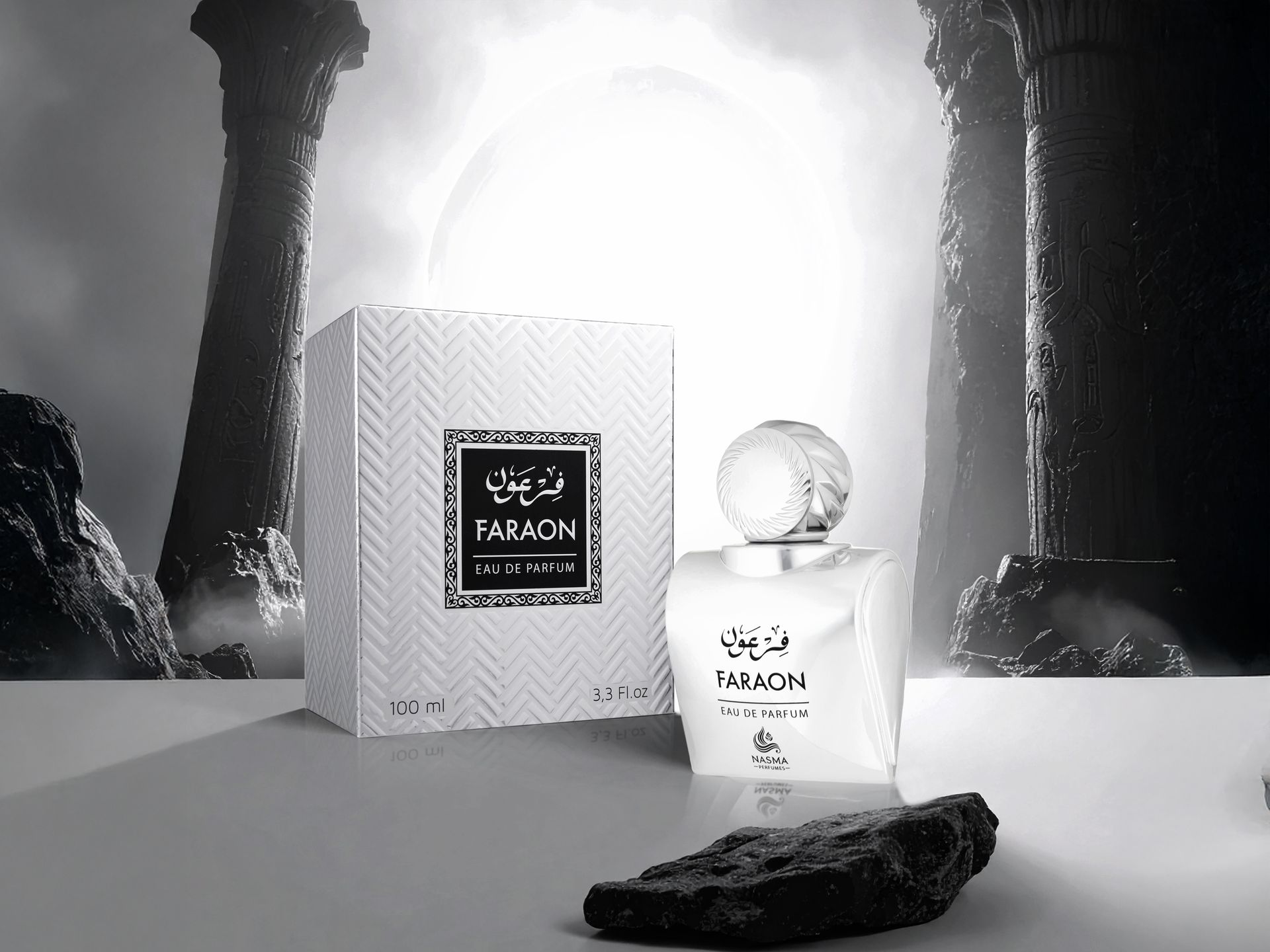 FARAON FOR MEN by NASMA is presented in a sleek, glossy white bottle with a majestic silver cap, exuding refined masculinity and regal charm. The fragrance opens with a vibrant blend of fruity and citrus notes that awaken the senses. Its heart reveals a fresh aromatic-green accord that adds a crisp, confident layer. The base settles into a warm, woody trail infused with smoky undertones and smooth vanilla, delivering depth and allure.