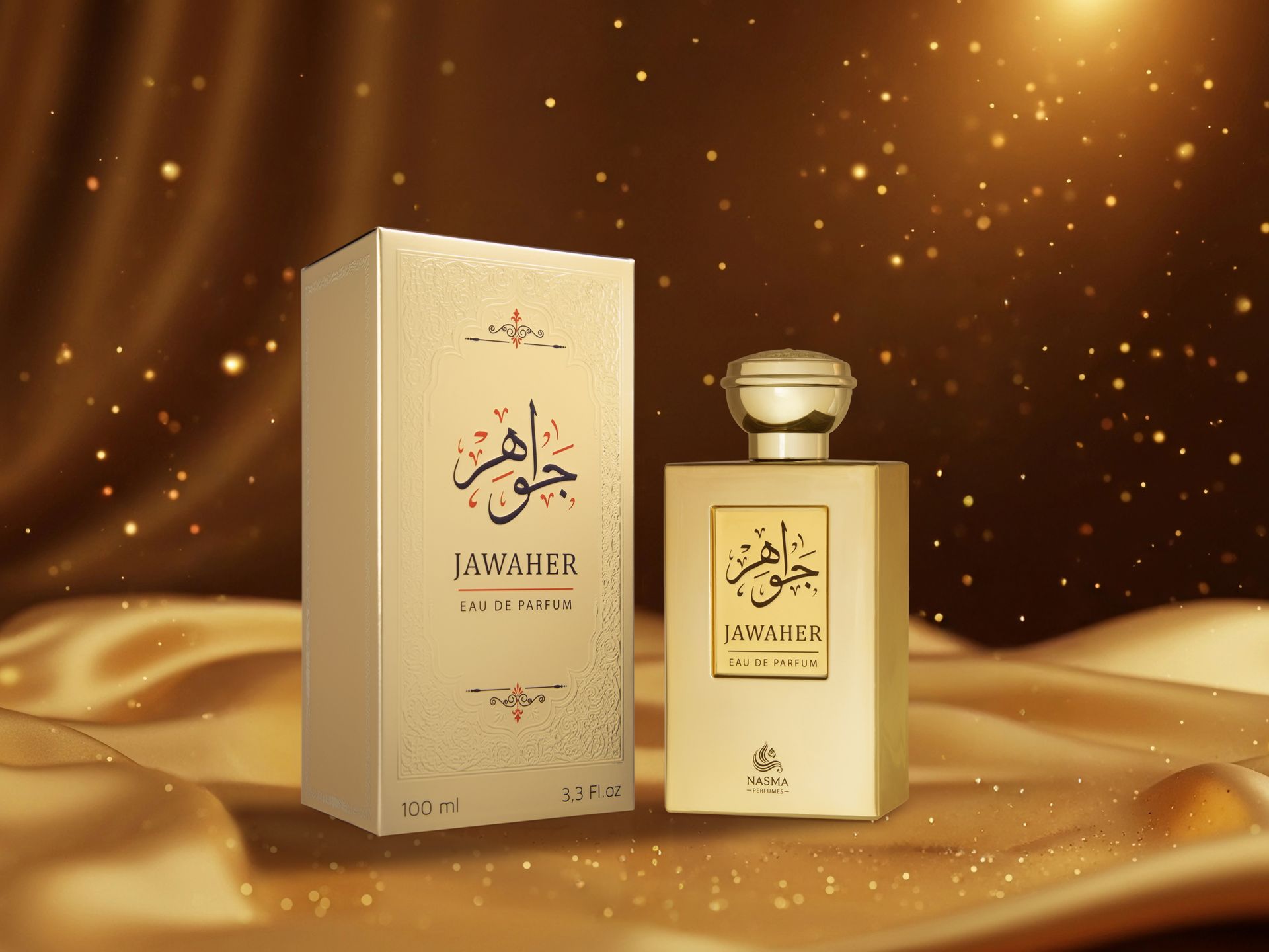 JAWAHER FOR MEN by NASMA comes in a sophisticated gold bottle with a regal design that embodies luxury and strength. It opens with a crisp, invigorating blend of citrus, fresh, and green notes. The heart is warm and spicy, enriched with floral nuances that add depth and charisma. The base evolves into a rich, earthy finish, combining amber, leather, and woody accords for a distinguished masculine trail.
