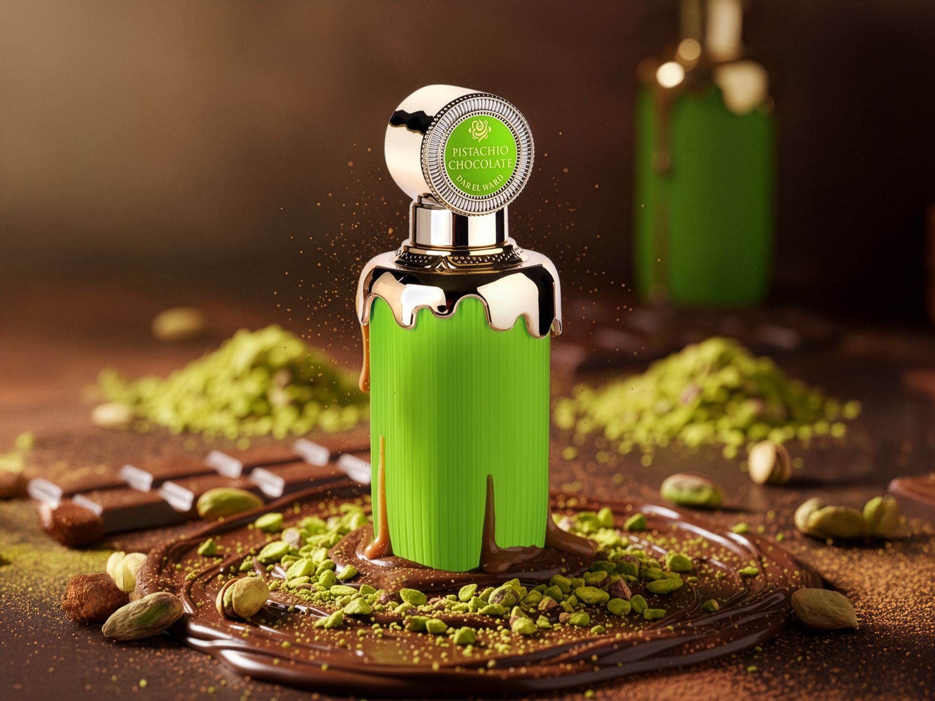 Gourmand, creamy, and warmly addictive, this fragrance is a delicious blend inspired by a luxurious dessert.PISTACHIO CHOCOLATE opens with a nutty richness softened by a hint of citrus, giving a bright yet indulgent introduction. The heart reveals floral touches mixed with lactonic creaminess and warm spicy notes, creating a smooth, velvety, and comforting core. The base settles into sweet and woody nuances, leaving a cozy, irresistible trail that feels both elegant and edible.