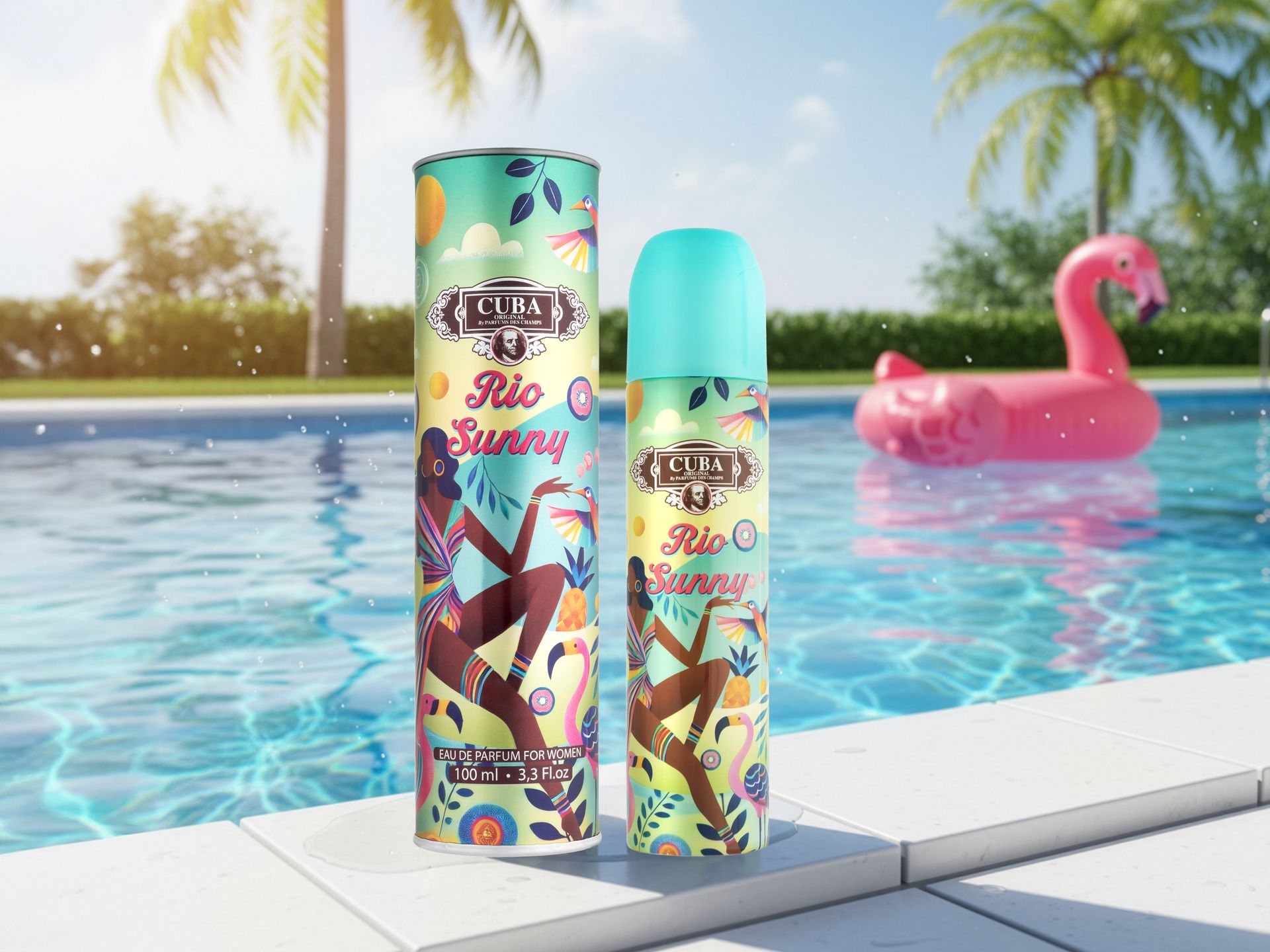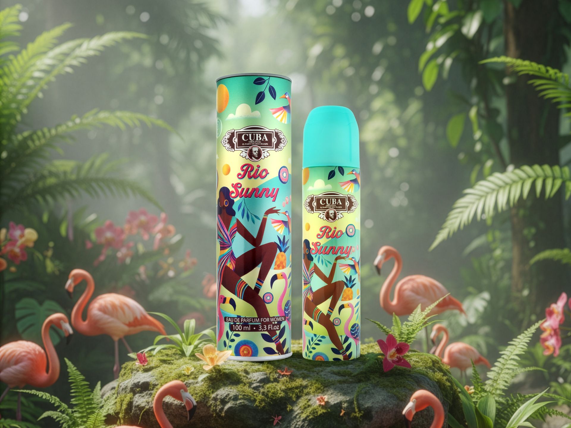 RIO SUNNY FOR WOMEN opens with a bright sweet note that instantly brings joy and softness. The heart reveals creamy and caramel facets that add richness and warmth, creating a smooth and comforting character. The base settles into a deep blend of burnt sugar, vanilla, and nutty notes, leaving a gourmand, cozy, and long-lasting trail.