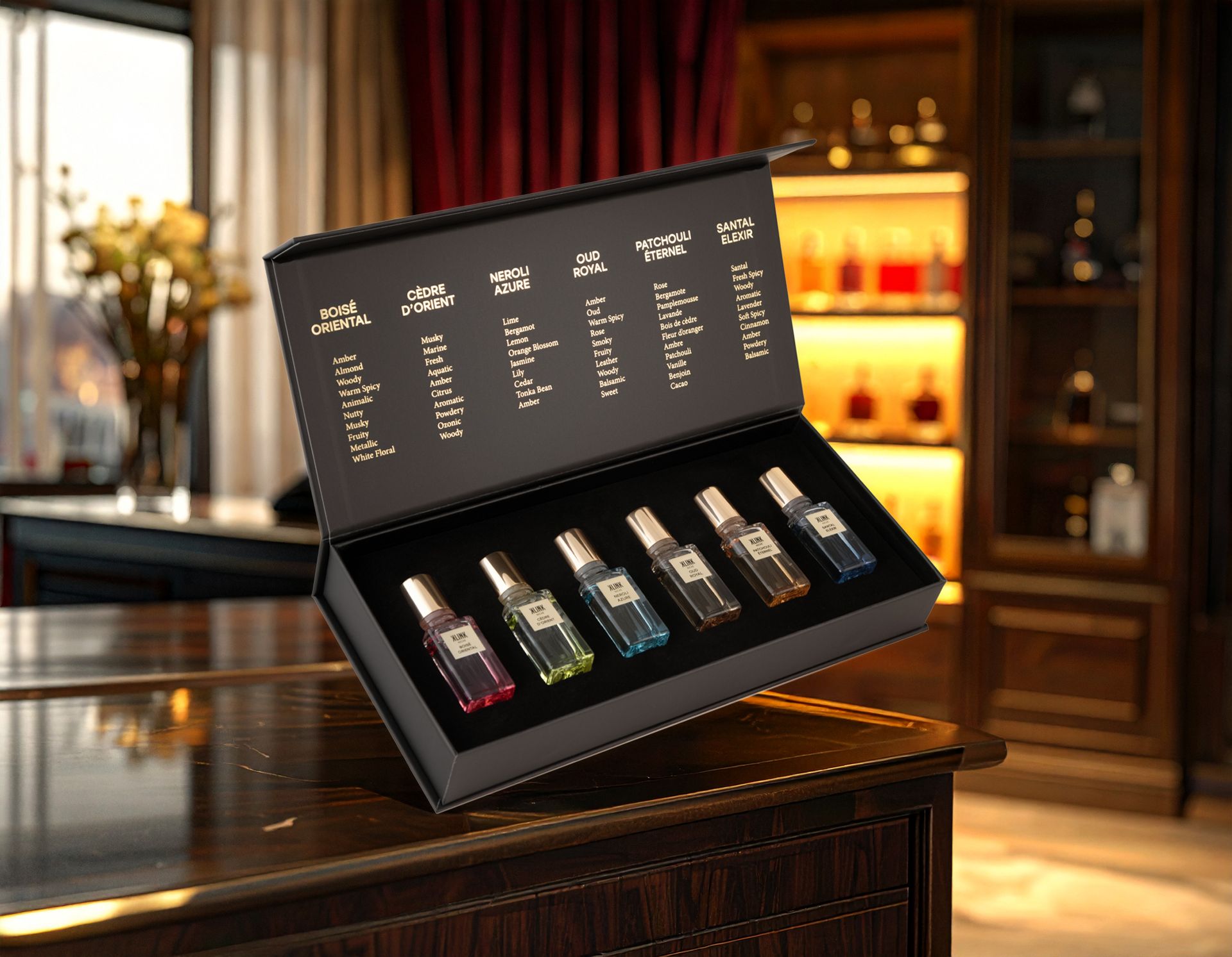 The SET KLINK NICHE Collection offers a refined discovery set of six 15ML fragrances, perfect for lovers of sophisticated niche perfumes. Elegantly presented, each scent unveils a unique world of depth and character: