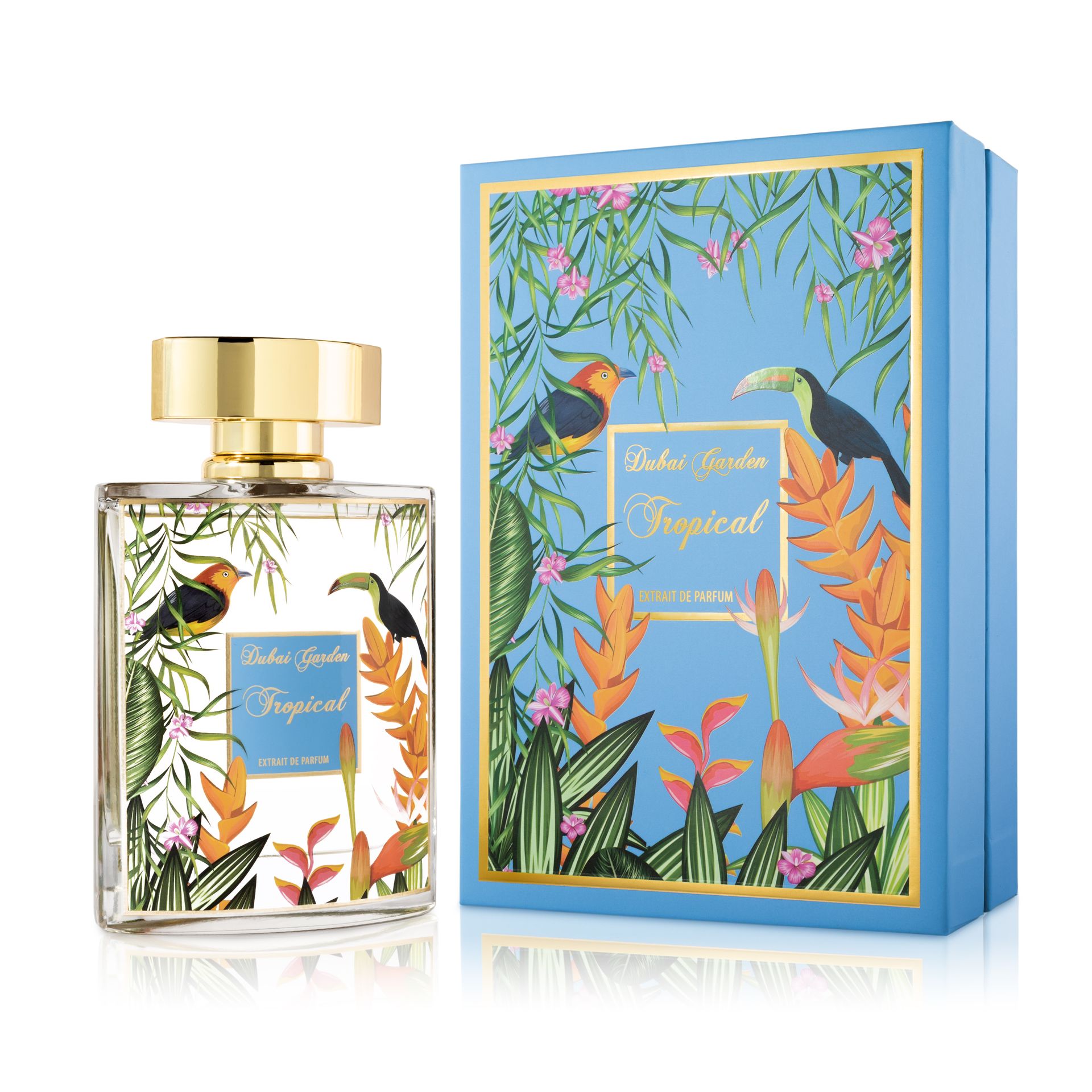 DUBAI GARDEN TROPICAL UNISEX opens with a refreshing burst of citrus and juicy fruity notes, offering an instant feeling of brightness and energy. Its heart reveals soft white flowers wrapped in a delicate sweetness, giving the fragrance a smooth and uplifting character. The base settles into warm woody accents blended with sweet and musky tones, creating a soft, inviting, and long-lasting finish.